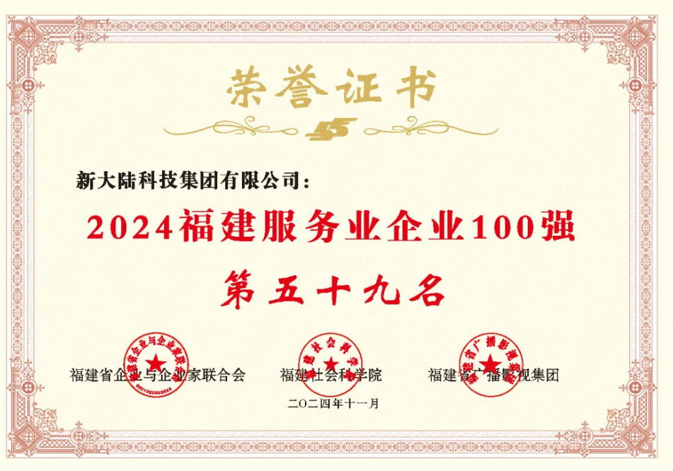 11月8日,2024福建企业100强发布大会暨福建企业发展专题讲座在福州召开。大会以“全面深化改革,争创一流企业”为主题,公布了2024福建企业100强榜单,包括“2024福建企业100强、福建制造业企业100强、福建服务业企业100强、福建战略性新兴产业企业100强”等四个榜单。金年会连续六年入围榜单,金年会科技集团荣登2024福建服务业企业百强榜单,位列第59名;金年会支付技术公司荣登2024福建战略性新型产业企业百强榜单,位列第48名。